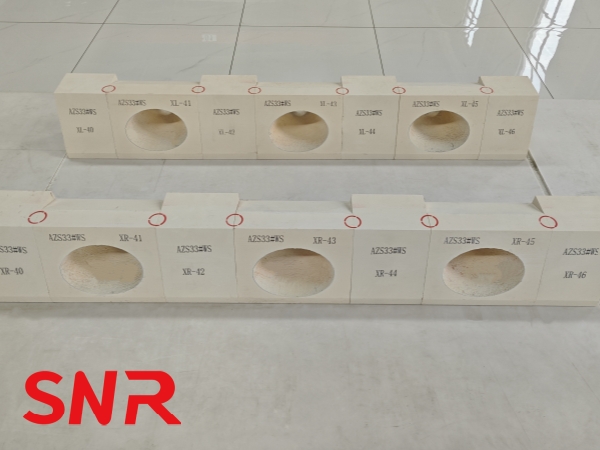 Melting Zone Sidewalls: These are in direct contact with the high-temperature molten glass, enduring its erosive and abrasive action, along with the influence of the furnace atmosphere. Using fused cast AZS blocks for the sidewalls effectively resists this erosion, extends their service life, and reduces defects like stones in the glass. Typically, high-zirconia content AZS blocks (e.g., 41# AZS) are selected for the sidewalls in the hot spot area of the melting zone for enhanced corrosion resistance, while 33# or 36# AZS blocks might be used in other areas to balance cost and performance requirements.